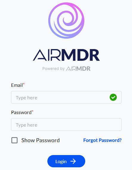 Navigate to AirMDR, provide the credentials, and click Login.