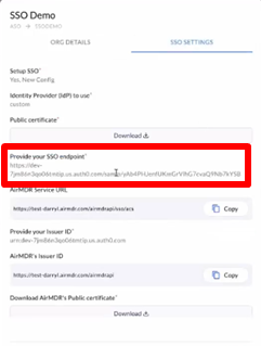 - In the Provide your SSO endpoint, enter the Identity Provider Login URL from Azure AD