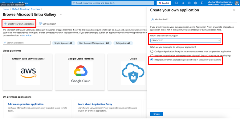 - Select “Integrate any other application you don’t find in the gallery (Non-gallery)”.