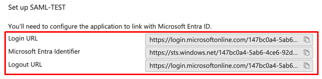 Copy the “Login URL and Microsoft Entra Identifier” from the “Set up [Your Application Name]” section.